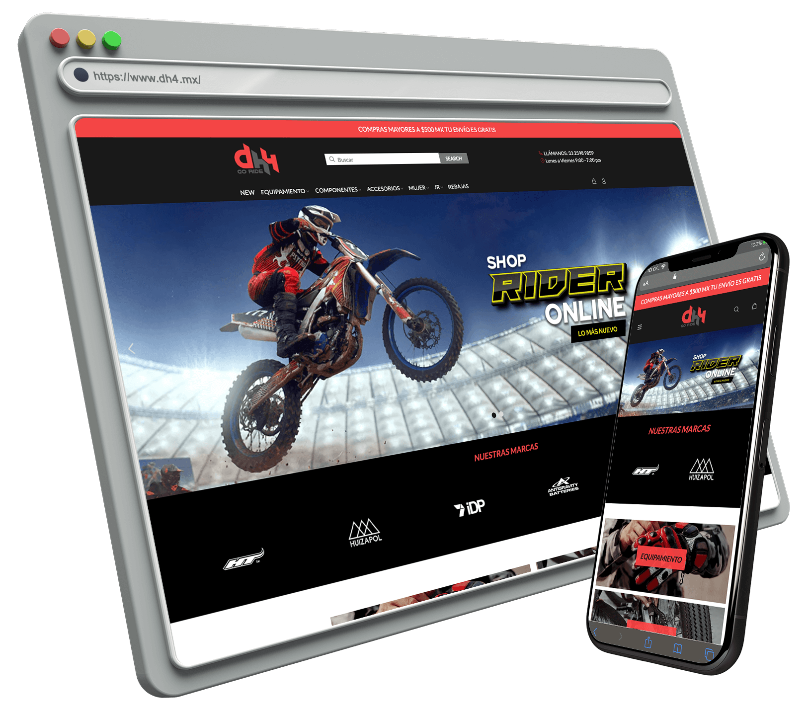- El resultado final es una tienda en línea atractiva y funcional, que ha permitido a DH4 expandir su alcance a nivel nacional y llegar a una audiencia apasionada por las motos en todo México. La plataforma ha generado un aumento significativo en las ventas y ha fortalecido la posición de DH4 como un proveedor confiable y especializado en equipamiento para motos.